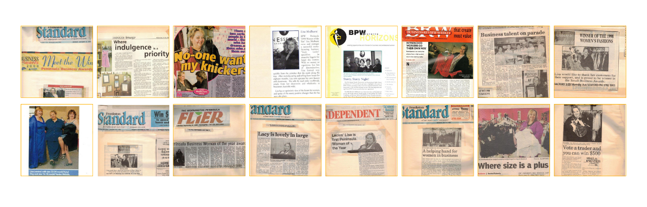 Over the years, Lisa’s Lacies has been celebrated in national newspapers, magazines, and fashion parades. Here’s a look at our journey through the eyes of the media: